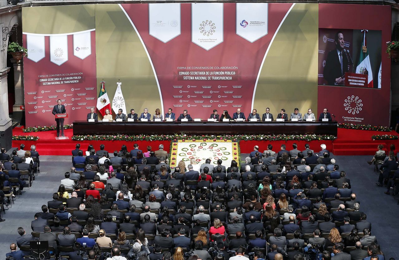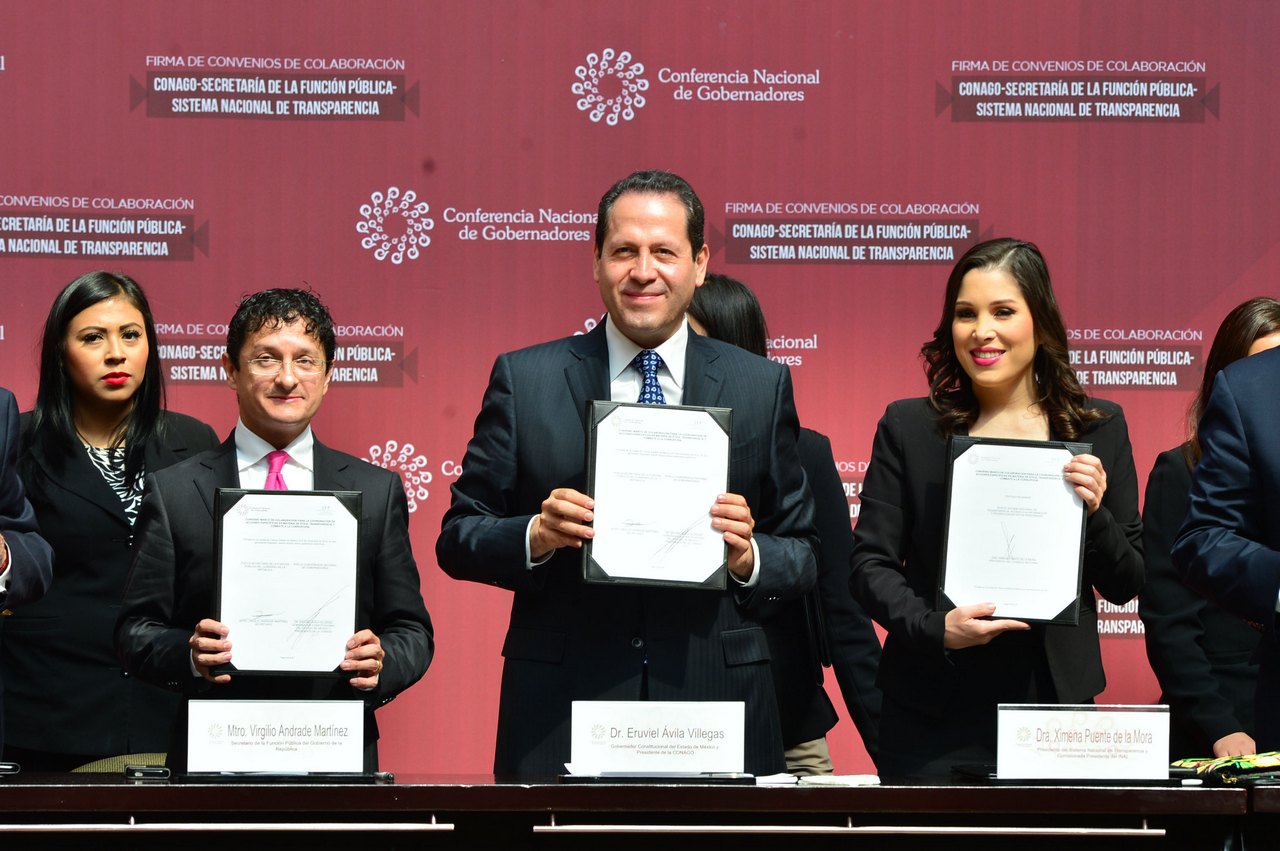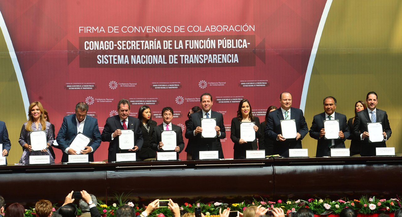 Firma de los Convenios de Colaboración entre la CONAGO, la Secretaría de la Función Pública (SFP) del Gobierno de la República y el Sistema Nacional de Transparencia, Acceso a la Información Pública y Protección de Datos Personales (SNT).