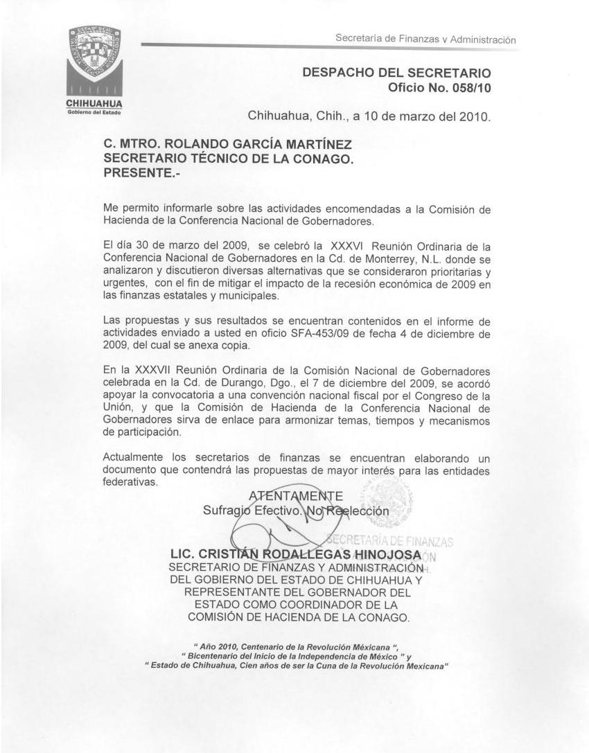 VIGÉSIMO TERCERO.- En cumplimiento a lo señalado en la fracción XVI del artículo 28 y del transitorio Séptimo de fecha 25 de abril de 2008, de los Lineamientos de la Conferencia Nacional de Gobernadores, se tienen por recibidos los informes anuales de trabajo de las siguientes Comisiones: